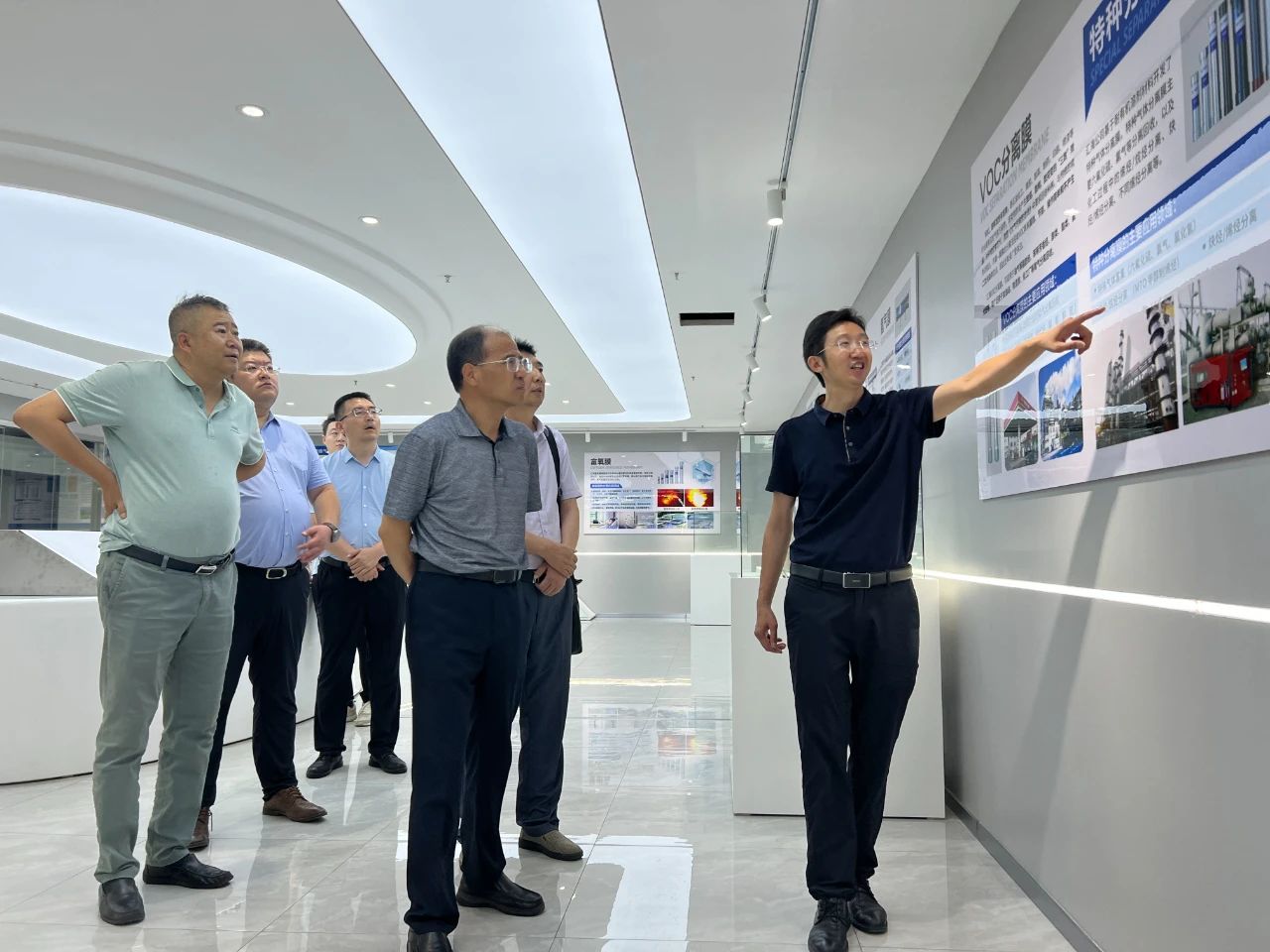 張學(xué)仁一行參觀了公司展廳和紡絲車間、烘絲車間、膜組件裝配車間、檢驗(yàn)檢測(cè)車間等科研生產(chǎn)現(xiàn)場(chǎng),實(shí)地了解了公司的科研生產(chǎn)等情況。
