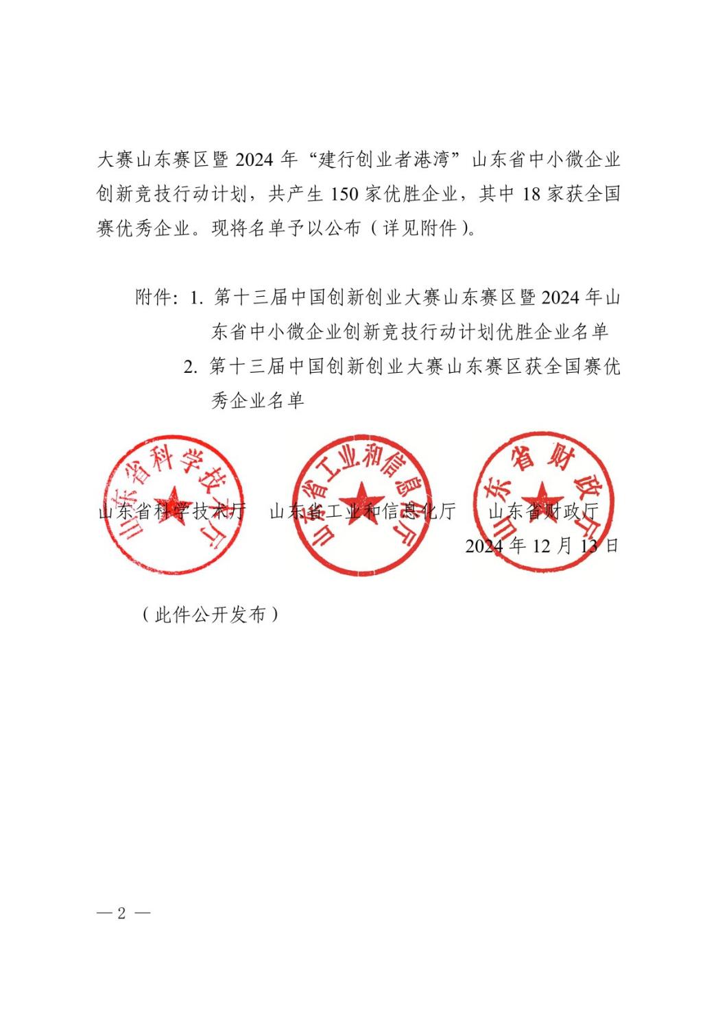 山東賽區(qū)暨 2024年山東省中小微企業(yè)創(chuàng)新競(jìng)技行動(dòng)計(jì)劃優(yōu)勝企業(yè)名單