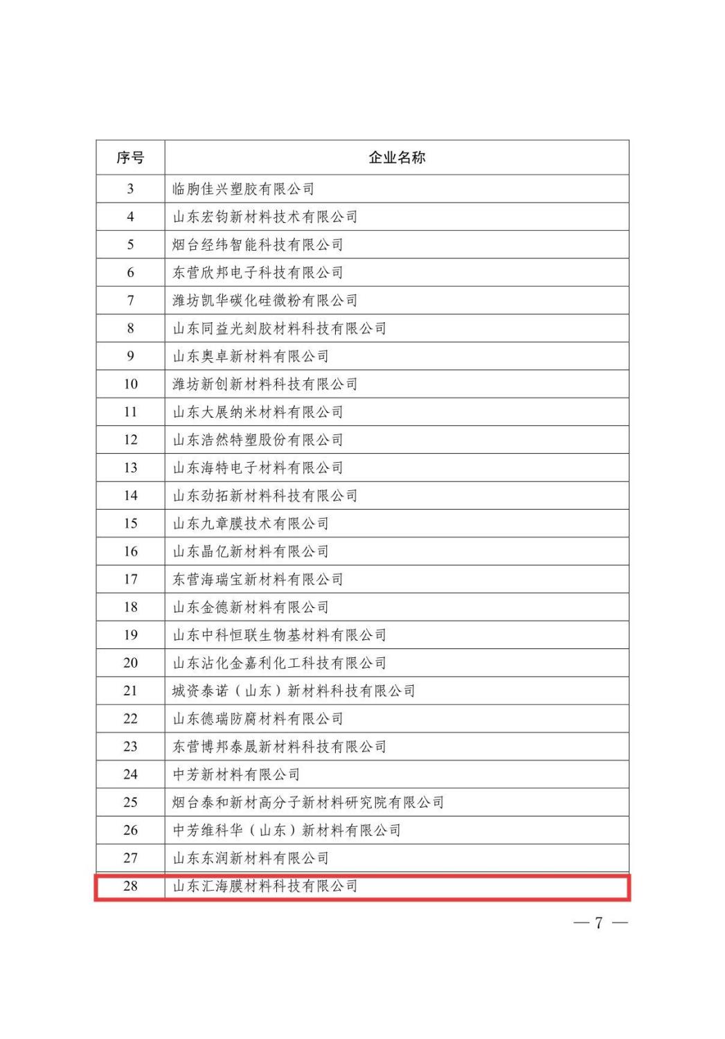 喜訊 | 山東匯海膜材料科技有限公司入選省新材料領(lǐng)軍企業(yè)培育庫(kù)